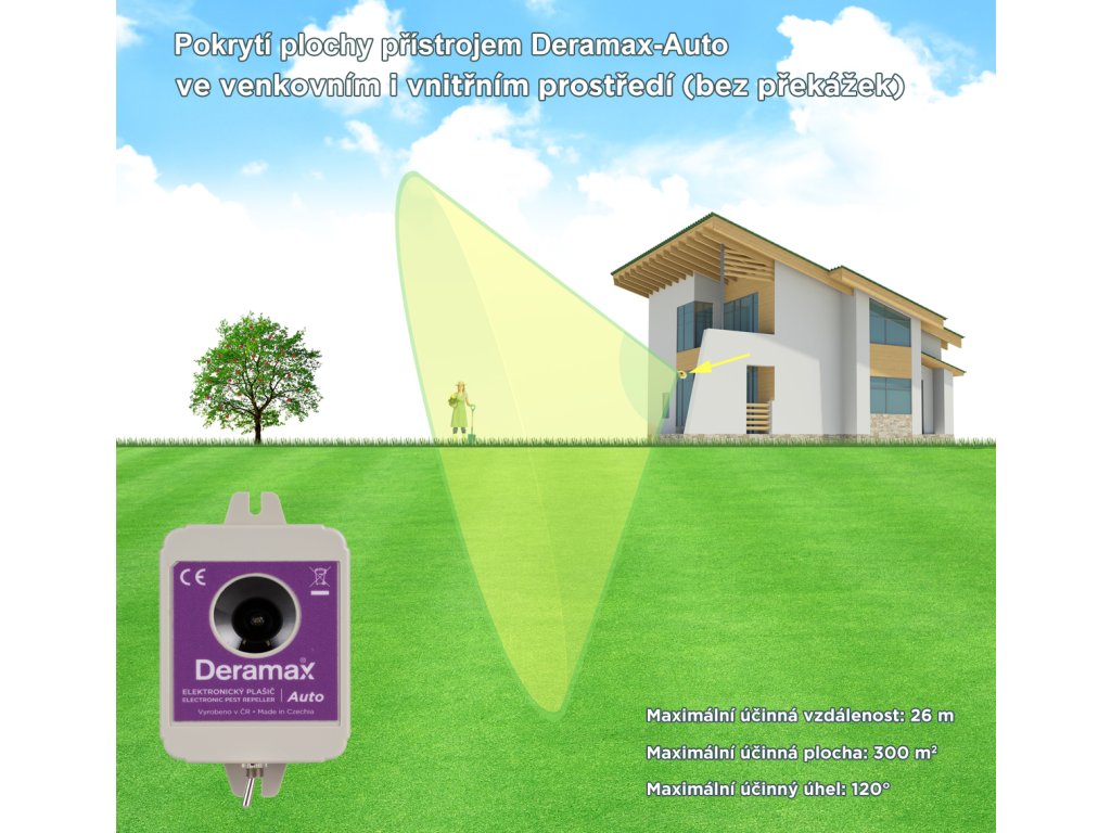 Rozsah účinnosti plašiče Deramax-Auto: