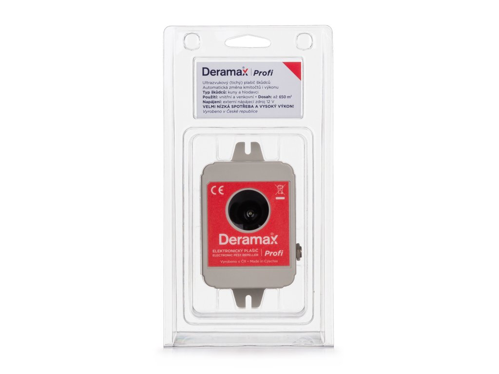 Plašič Deramax-Profi slouží k ochraně vnitřních i venkovních prostor před kunami, hlodavci a rejsky. Přístroj je pro člověka zcela bezpečný a bezhlučný. Škůdci jsou trvale obtěžováni ultrazvukovými signály plašiče a v krátkém čase chráněný prostor opouští. Provoz přístroje je ekologický bez využití chemických prostředků.